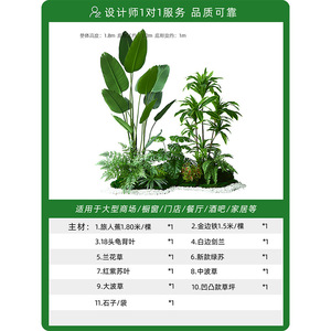 シミュレーション緑植造景組合せ室内シミュレーション植物鉢植えショーウインドー造花装飾木階段下造景竹