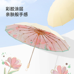 新型三つ折パラソル16骨日焼け止め紫外線防止フランスレトロ傘丈夫抗風高級日傘