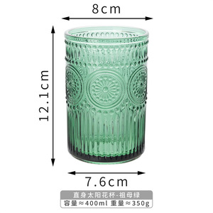 レトロなレリーフ太陽の花のガラスの縦の紋様のコップのコップの彫刻の花は家庭用のコーヒーの牛乳のコップのジュースのコップを厚くします。