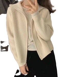 2025秋冬新作 レトロ風 ゆったり襟付きセーターコート 韓国風 ゆったり 無地 ジップアップ ニットカーディガン レディース