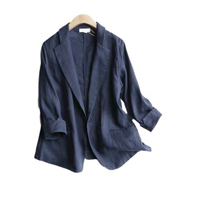 綿麻の小さいスーツのコートの女性の春の夏のゆったりしている気質はやせています。