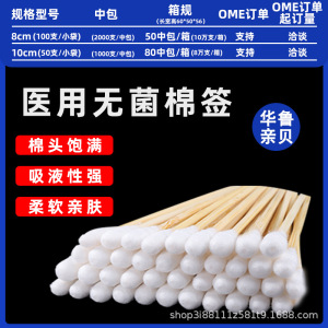 華魯親貝医療用綿棒無菌綿棒滅菌医薬消毒家庭用シングルヘッド乳児抜耳脱脂綿棒