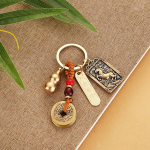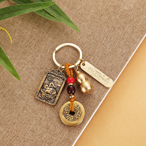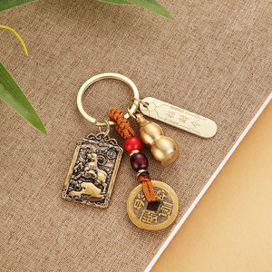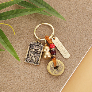 純黄銅五路武財神趙公明トークン車のキーホルダー