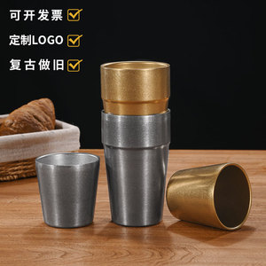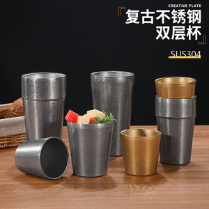 レトロ304ステンレス二重コップは古い韓国式焼肉レストランのティーカップのビールカップの飲み物を作ります。