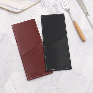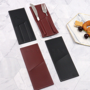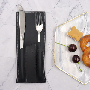 現物のシンプルな皮質ナイフとフォークの食器棚の食器は西洋料理のステーキレストランのナイフとフォークの食器を置いて袋を置きます。
