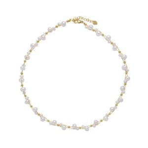 淡水真珠小金珠クロス編みネックレス女性レトロフレンチファッション宮廷風シンプルチタン鋼鎖