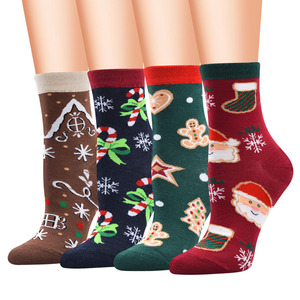 新型のサンタクロースの女性の靴下の中筒の綿の靴下のかわいい女性の靴下の卸売りの速売はアマゾンの国境を越えます。
