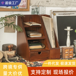 デスクの木の収納箱の雑物は多層の香水の化粧品の棚のデスクトップの整理棚の文房具の箱を収納します。