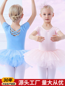 子供のダンス服の女性の夏の半袖の練習服の女の子の中国のダンスのバレエのスカートの子供のダンスの蓬蓬の紗のスカート