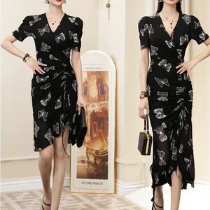 夏の黒い花のワンピースの気質の名媛はやせています。