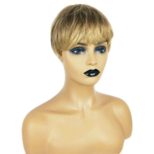 Shein人気かつら女性ふわふわ化学繊維短髪wigs欧米対外貿易金茶色斜前髪メカニズムの頭カバー