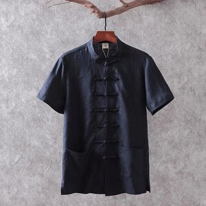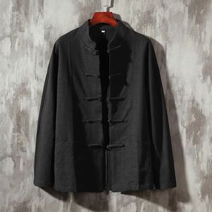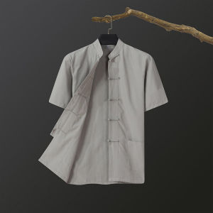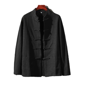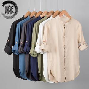 中国風長袖シャツ男性綿麻大サイズカジュアル立襟シャツ復古風中国式唐装亜麻男服