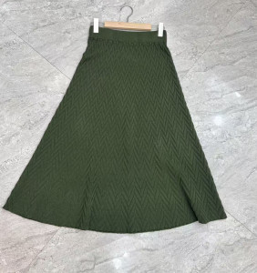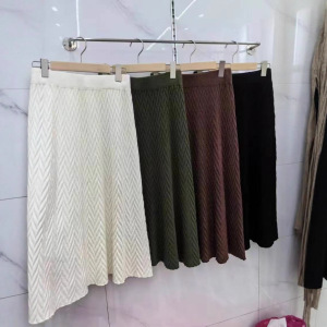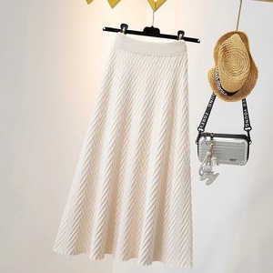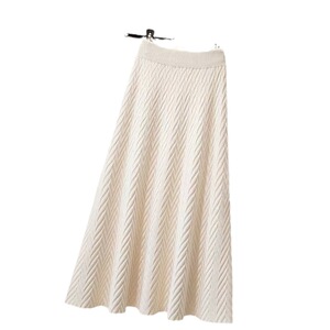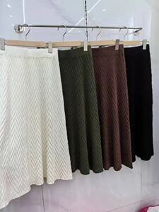 デザインされた秋と冬のクロスボーダー新しいミッドレングスニットスカート女性の弾性ウエスト無地 A ラインテクスチャレイヤードスカート
