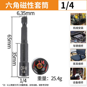 メーカーインチ1/4强い磁気スリーブヘッド风バッチスリーブヘッドバンド强い磁気スリーブ3/8六角スリーブヘッド65mm