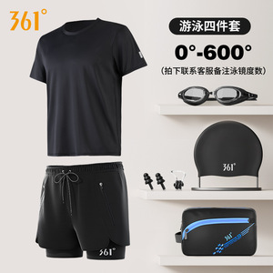 ブラック【水着 + 五分水泳パンツ + 水泳帽 + 水泳鏡 + 水泳バッグ + 防水バッグ】
