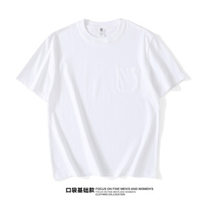 ダークダークグリーンピュアコットンベーシックTシャツトップスメンズ2025新作シンプル万能カラーパッチポケット半袖シャツ