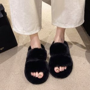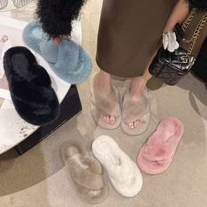 女性が外で履くための毛皮のようなスリッパ 2025 新しい韓国スタイルのイントレンディな靴秋と冬のクロス厚底綿スリッパ秋と冬