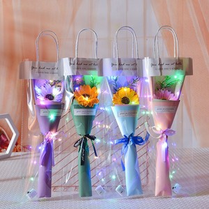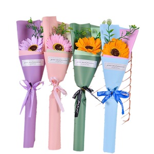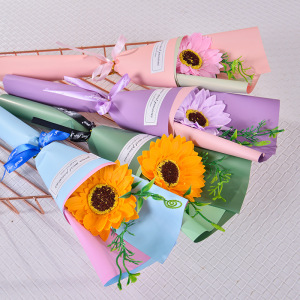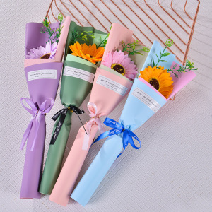 七夕の贈り物の卒業のヒマワリの小さい花束は石鹸の花の単一のバラの花のバレンタインデーの贈り物の教師の日をシミュレーションします。