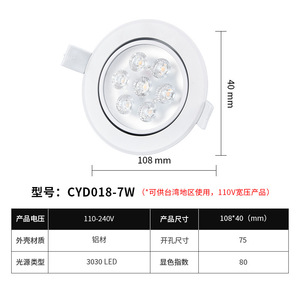 埋め込み式スポットライト天井灯室内無主灯展示室商超照明台湾広圧110v天井スポットライト