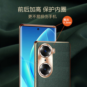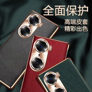 栄光60pro携帯電話ケース適用真皮華為60保護カバー金属レンズ全包転倒防止超薄型ビジネス