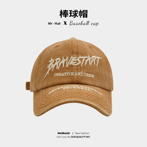 クロスボーダー帽子男性欧米風水洗いして古いアルファベット刺繍野球帽屋外日よけ大頭囲鴨舌帽