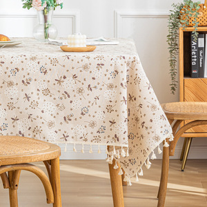 田園のフランス式の花のテーブルクロスは綿の麻のフリンジのネットの赤い食事のテーブルクロスをまねます。