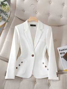 白い小さいスーツのコートの女性の秋の新型の女性の小さい背はやせていて高級感があります。