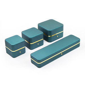 丸い角の蓋の金の辺のpu皮の高級な宝石のアクセサリーの箱の指輪のペンダントのイヤリングのブレスレットのネックレスのアクセサリーの包装箱