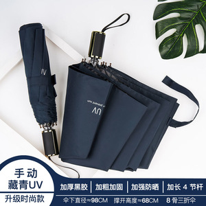 8骨手動プラスサイズ黒ゴム傘-紺色