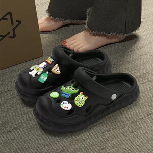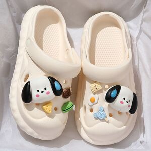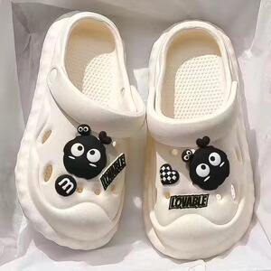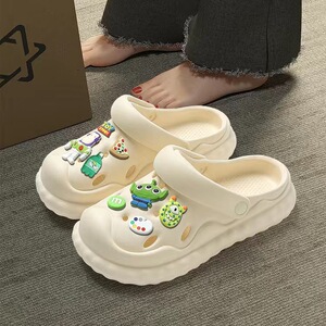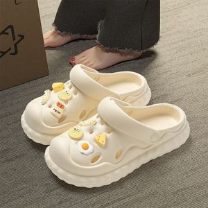 糞感スリッパを踏む女性の夏の外にかわいい室内の滑り止め家庭用の厚い底のカップルの穴の靴を着る夏