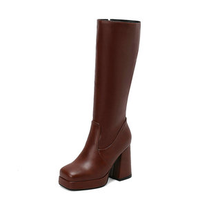 防水台の太さと超ハイヒールの女性のブーツの四角の頭の側のファスナーの女性は膝のブーツと膝のマーティンの女性のブーツを過ぎません。