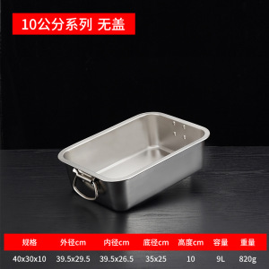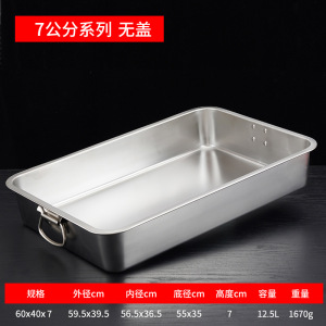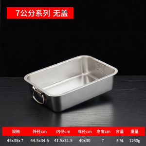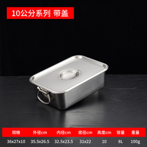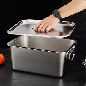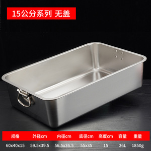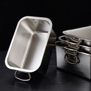 ステンレス特厚深方盆業務用野菜鉢耳付きハンドル食品回転皿盆かご収食盆揚げ物盆