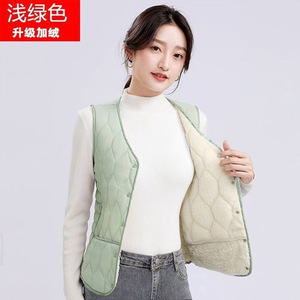 2025年秋冬新作 ノースリーブダウンコットンジャケット レディース ショート丈 ラムウール 厚手 インナー ベスト スリムフィット 大きいサイズ