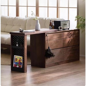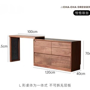 オール無垢材ドレッシングテーブル、ブラックウォールナット化粧台、引き出し付きキャビネット、一体型モダンシンプルチェリーウッド可動式ベッドサイドキャビネット