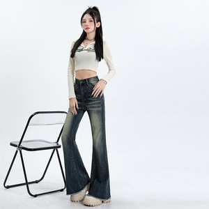 微ラッパジーパン秋冬女2024高腰でやせています。