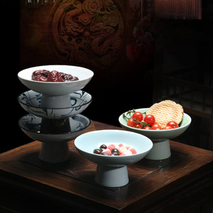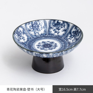 青花磁器高脚果盤中国式陶磁器茶点盤乾ナッツ菓子大サイズ果物盤功盤茶室レストラン