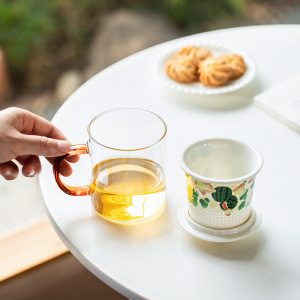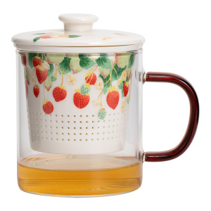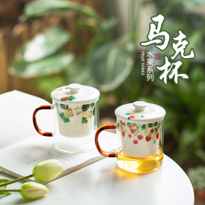 果物陶磁器内胆濾過マグカップ茶水分離蓋付き茶カップ家庭用耐熱ガラスカップ
