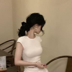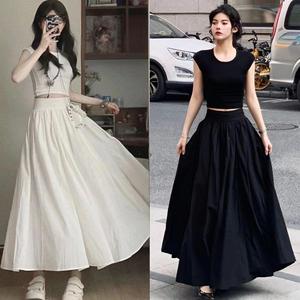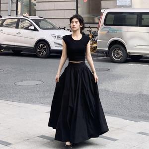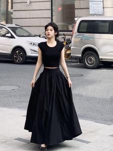 赫本風半身スカートフレンチスーツ女性修身半袖tシャツ夏大スカートa字スカート気質二点セット