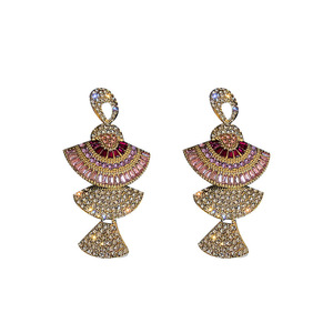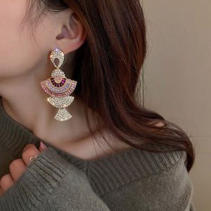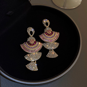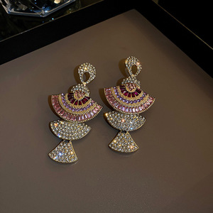 中世ヴィンテージイヤリングシルバー針カラーダイヤモンド扇形イヤリングフレンチスタイルファッションイヤリング女性のための卸売
