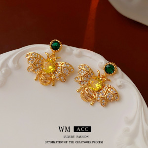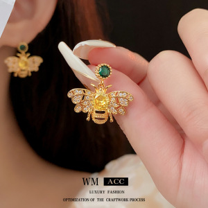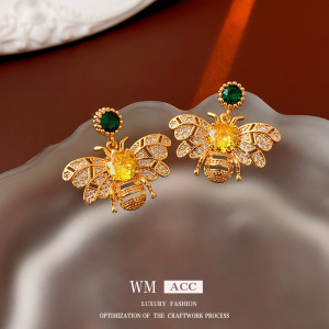 銀針ジルコンミツバチの小型金属イヤリングファッション