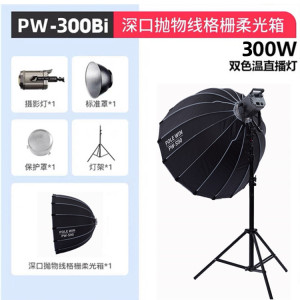 2色温(300w) + 90深口放物グリッドソフトボックス + 2.8ランプホルダー