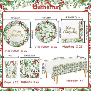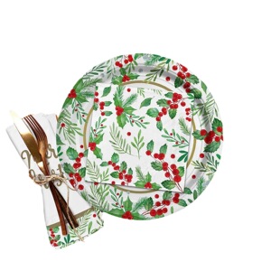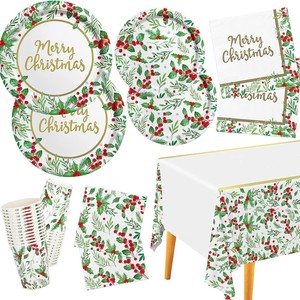 箔押しクリスマステーマ装飾緑葉紙皿紙コップティッシュセット旗を引いて食器パーティーセットを配置する