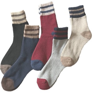 アマゾンのクロスボーダーの外国貿易の靴下の女性の中筒の靴下のストライプの点の毛の輪はウサギのウールの靴下を厚くします。