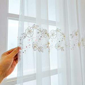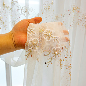 メーカーの卸売りは軽くて豪華な予約の玉の白い紗の刺繍の窓の紗の花のレストランの客間の寝室のベランダは光を通して国境を越えます。