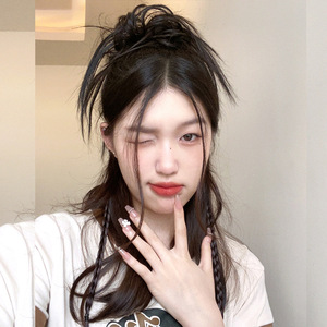 鶏の巣の頭はギャルの個性の団子の頭をつかんでふわふわしています。