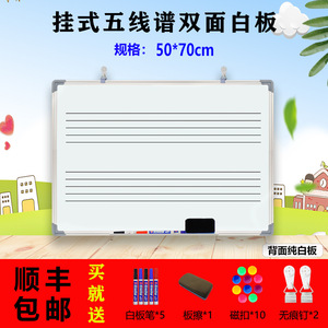 吊り下げ式50*70cm五線譜両面ホワイトボード (2組の線) + ギフトバッグ