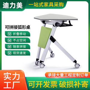 新型の扇形折りたたみトレーニングテーブルは多くの人が円卓の知恵教室をつなぎ合わせて移動できます。