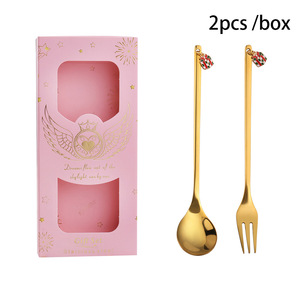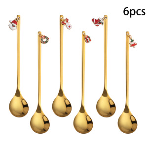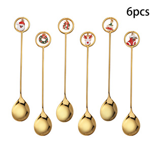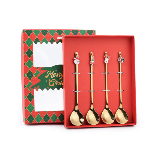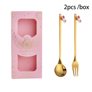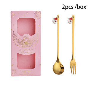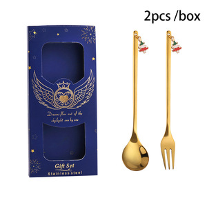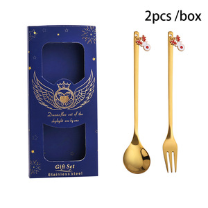 Qクリスマスデザートスプーンフォークギフトボックスセットクリスマスツリーフルーツフォーク漫画カトラリーギフトサンタクロースコーヒースプーン