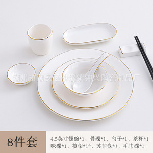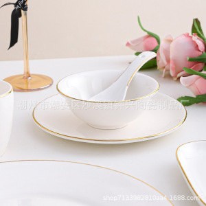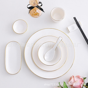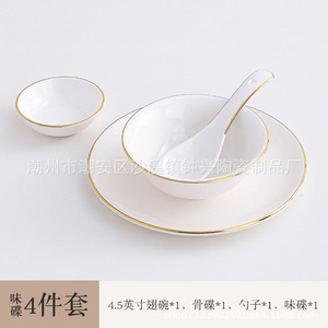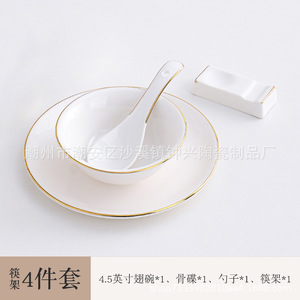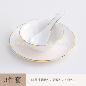 ホテルの陶磁器の置物レストランの金辺の食器の皿のセットの骨の皿の翼の碗の3セットの4セットのlogo