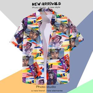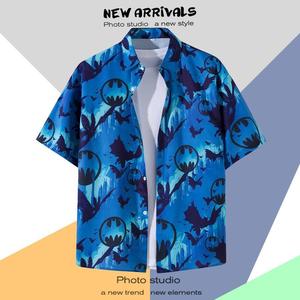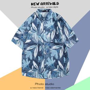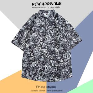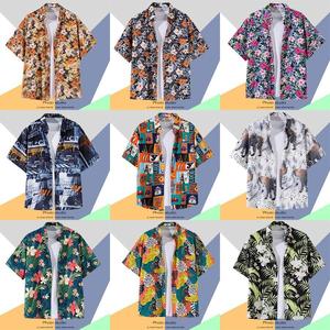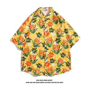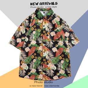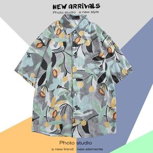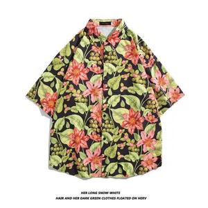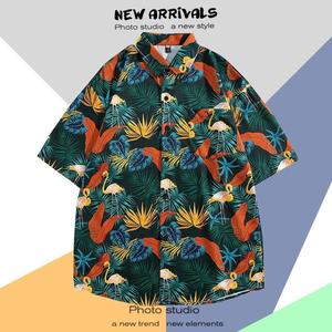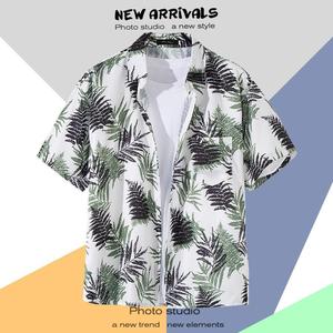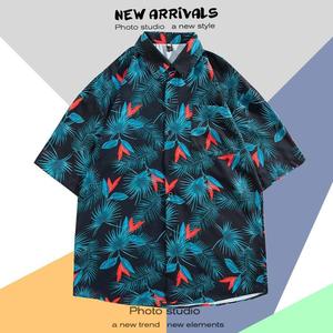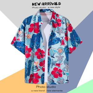 ハワイアンプリント半袖シャツメンズ夏タイ旅行休暇ビーチメンズシャツルーズファンシートップ